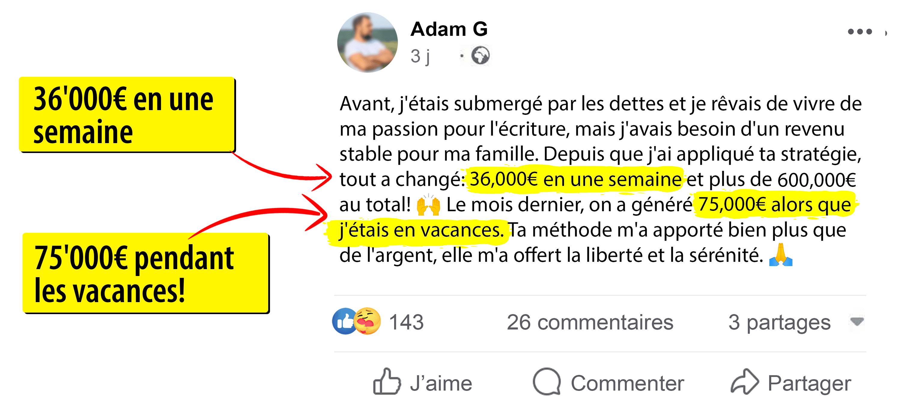 Avant d'enseigner et de partager cette méthode avec le public il y a plus de 10 ans, j'avais déjà généré des millions d'Euros pour mes propres activités.